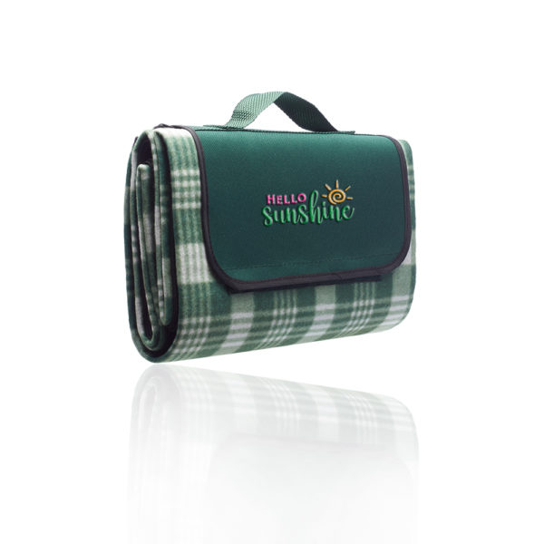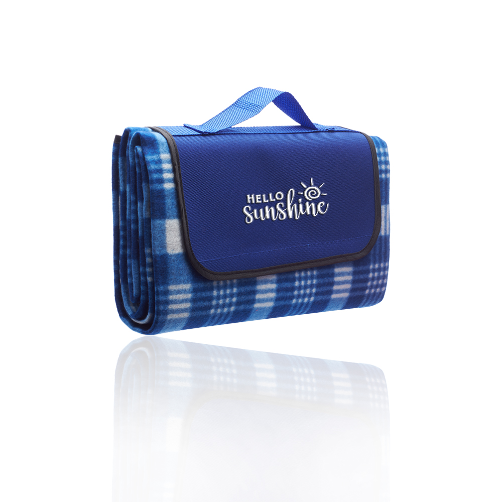 Fleece polyester roll up picnic blanket, great gift for anyone, one that all your customer would appreciate.
