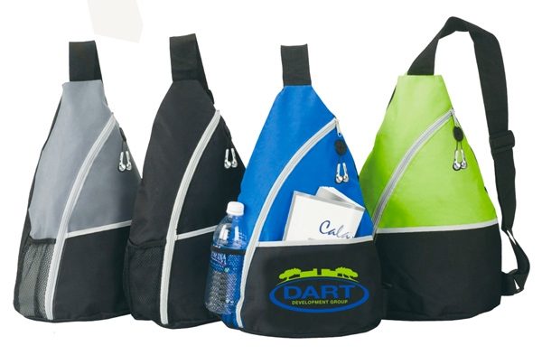 AUB 802 Large Sling Backpack……………(Also available fully custom for 500 pieces just ask, PMS matched material, special full color printing)