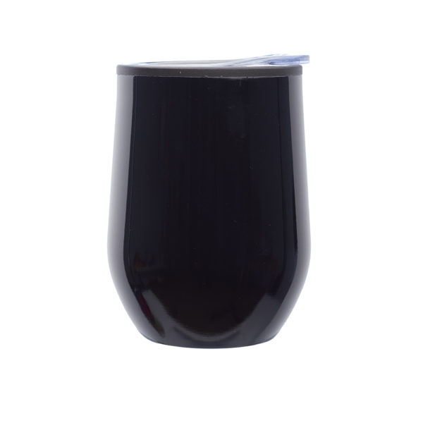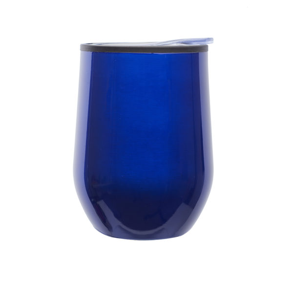 AUD 008-B : Stemless 12 oz Wine Glass in Stainless Steel with Clear Plastic Lid (not vacuum)