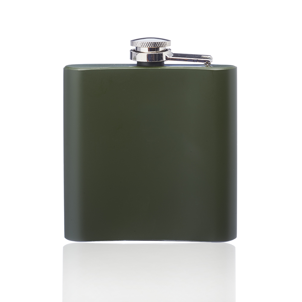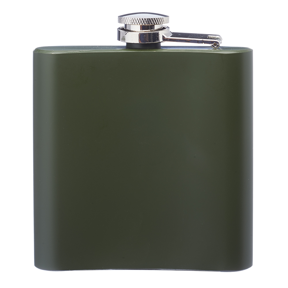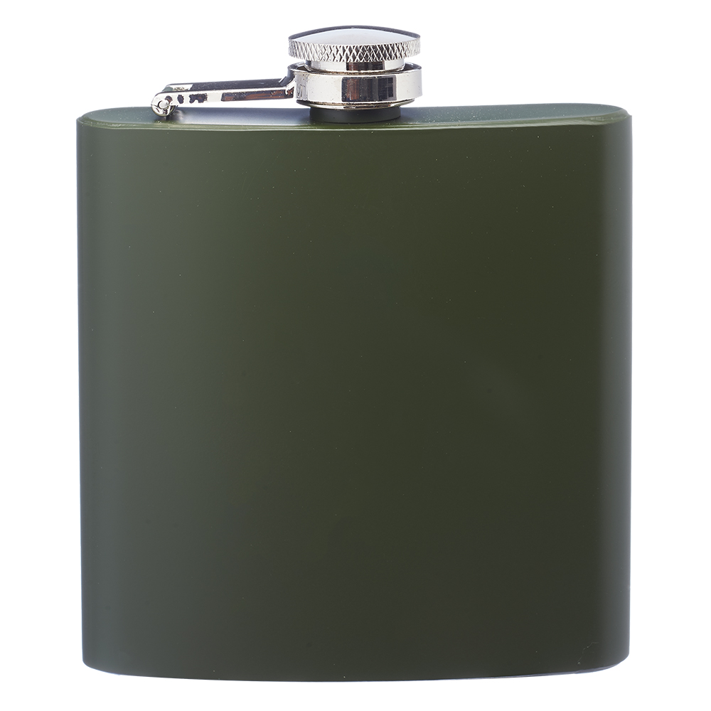 - 6oz Stainless Steel Hip Flask with Army Green Outer.