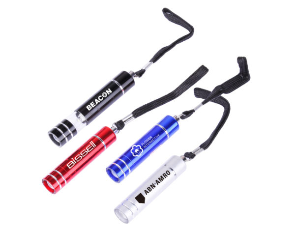 Colorful Aluminum LED key light has a 1 3/8 x  3/8″ imprint area on 2 sides. Great giveaway for any budget!