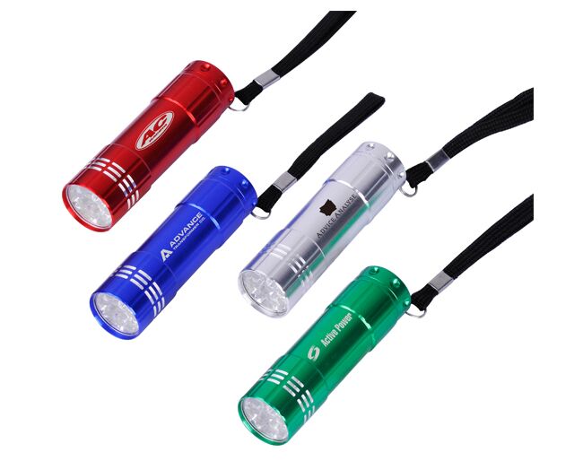 Our DPL 3216 Large Super Bright 9 LED Bulbs Aluminum Flashlight with Wrist Strap. 3 AAA Batteries and Gift Box included Get your brand out there and keep it in their hands!