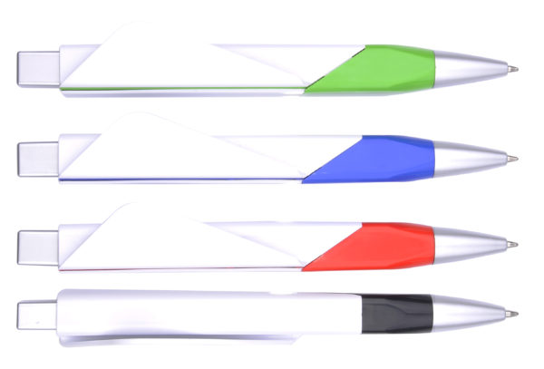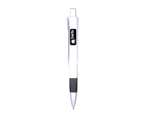Solid white colored barrel, choice of color rubber grips. 2 print areas.