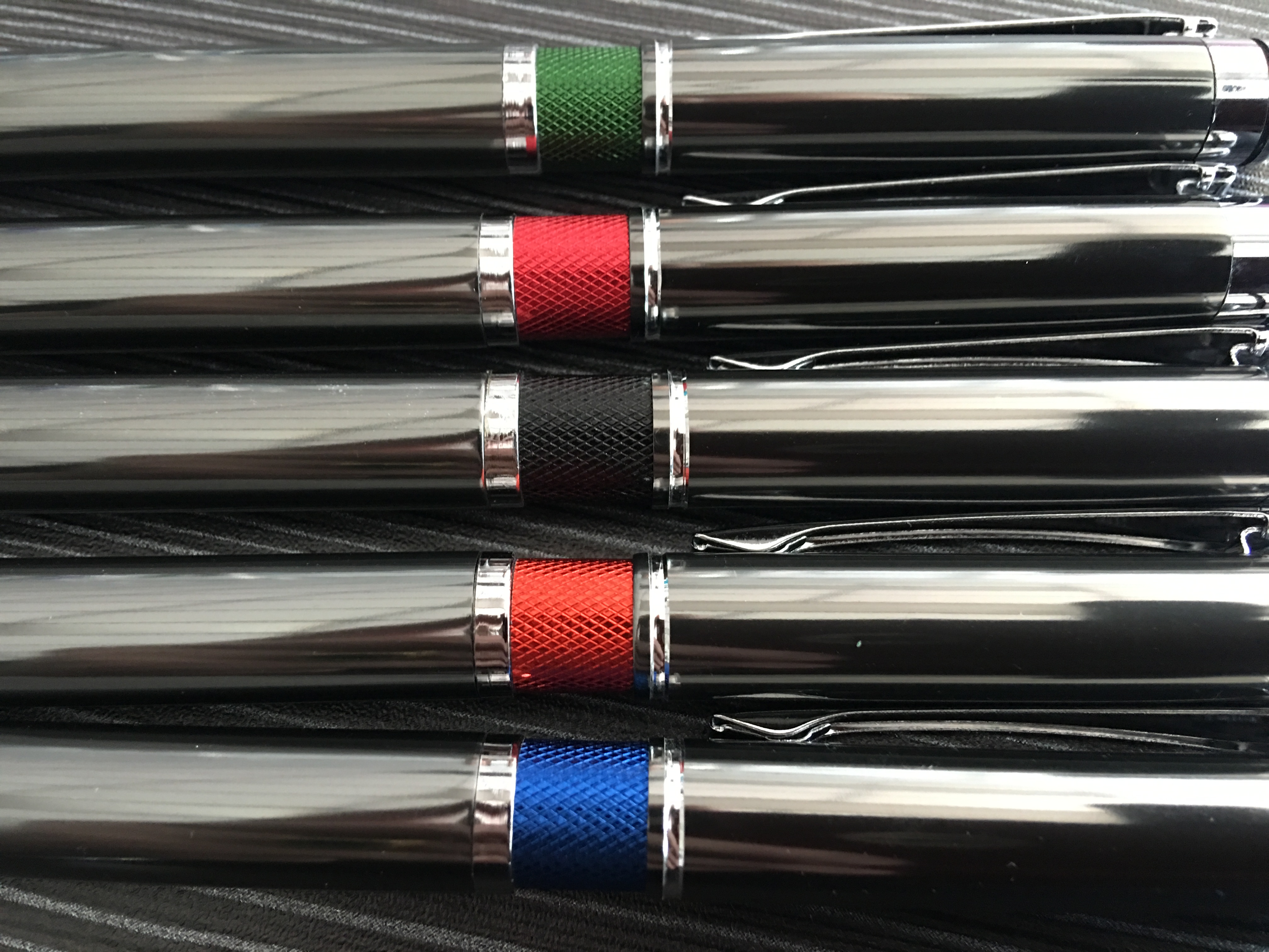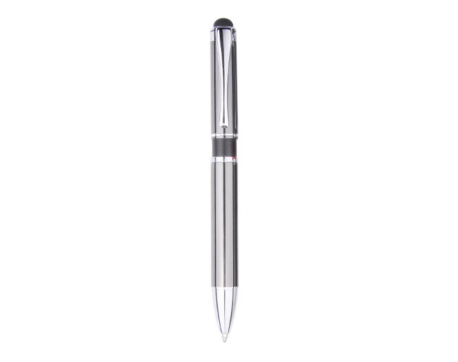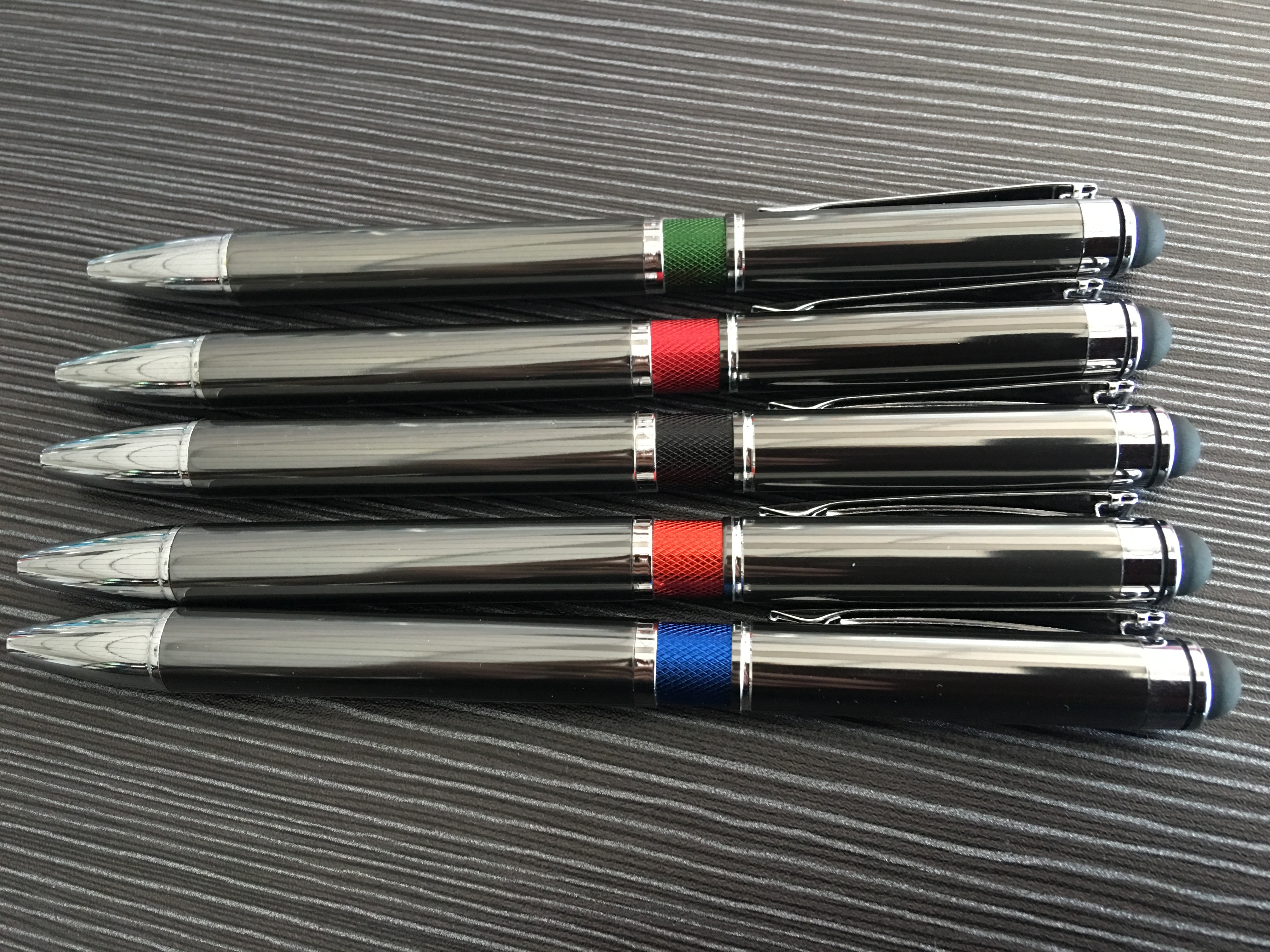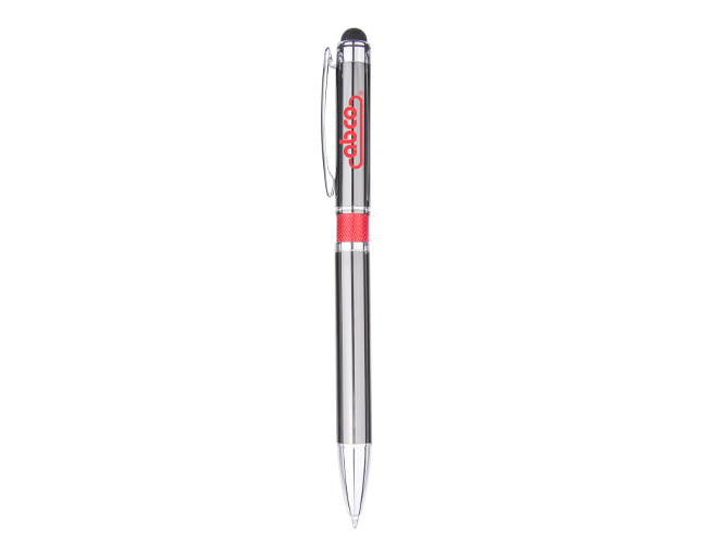 Gun metal aluminum barrel with milled colored rings, Stylus  very attractive all metal Pen.
