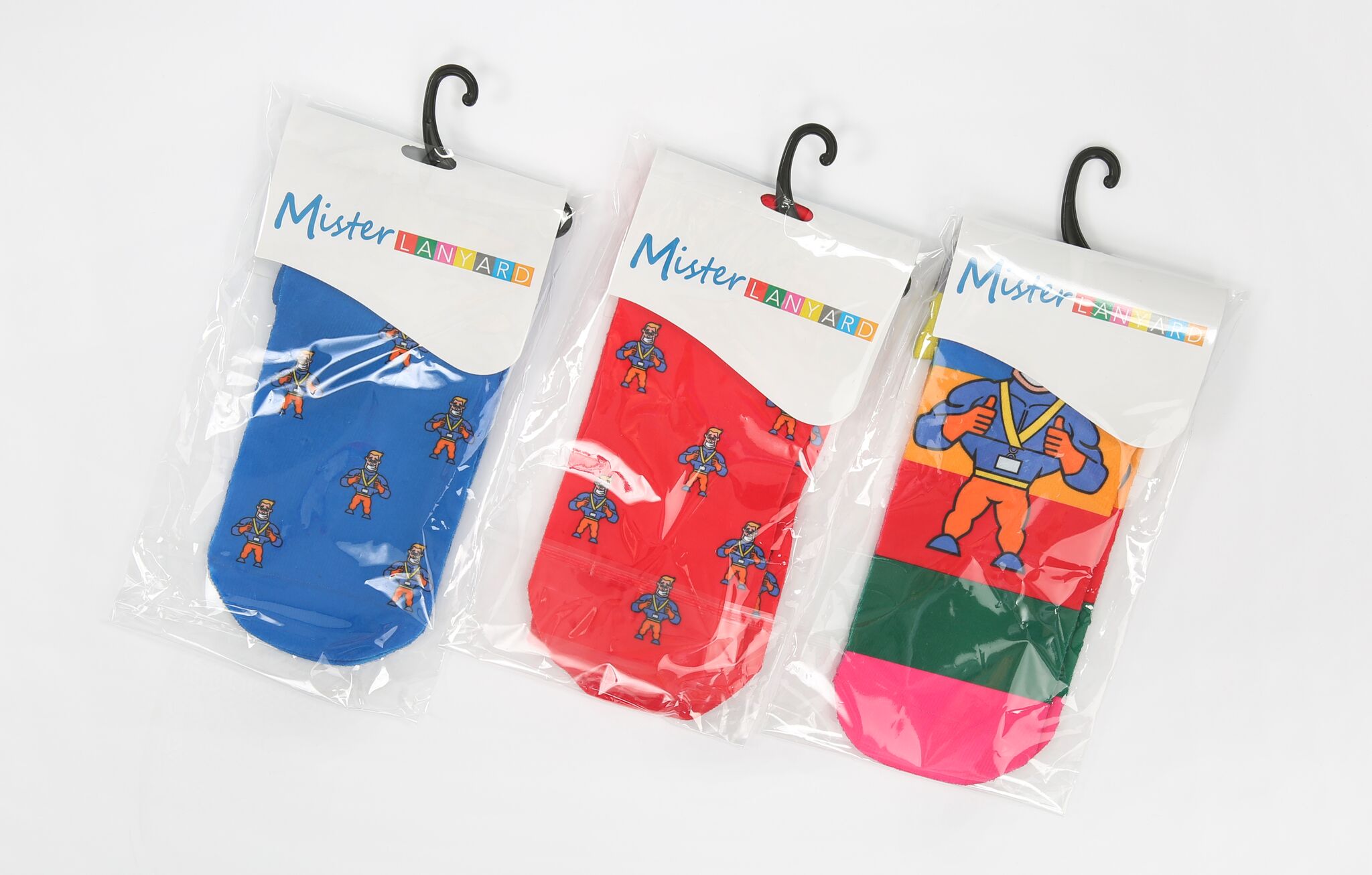 Socks can be child or adult size. Custom packaging available at extra cost.