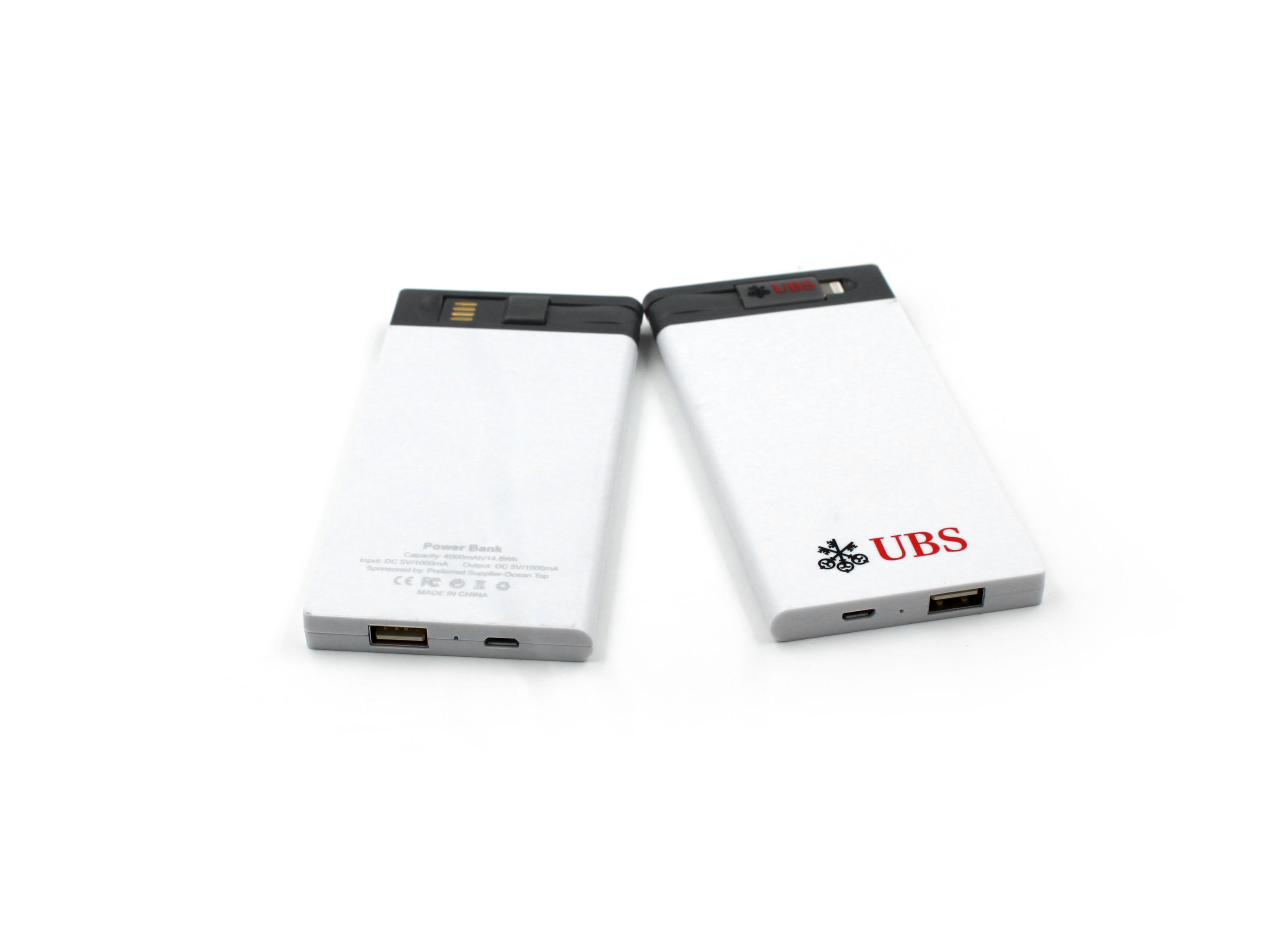 PB 119-A Slim pocket Power Bank with built in Android and iPhone charging cable – 4000 mAh