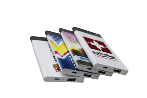 A high quality slim pocket power bank. With built in Android and iPhone charging cable. The cable is held in magnetically. Large all over print area.