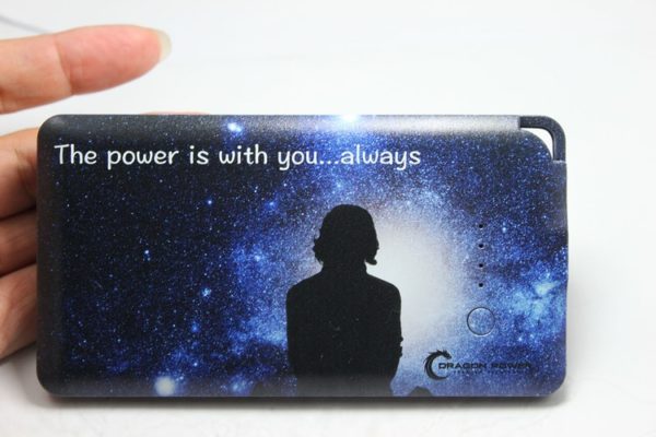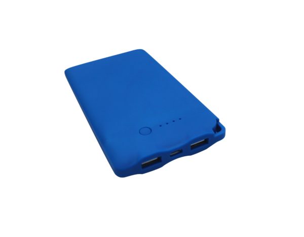Our PB 119-C Powerful! Soft Feel, Slender, Pocket Power Bank – 8000 mAh with Black Wrist Strap. Color Wrist Strap Available for $.25/pcs (r).