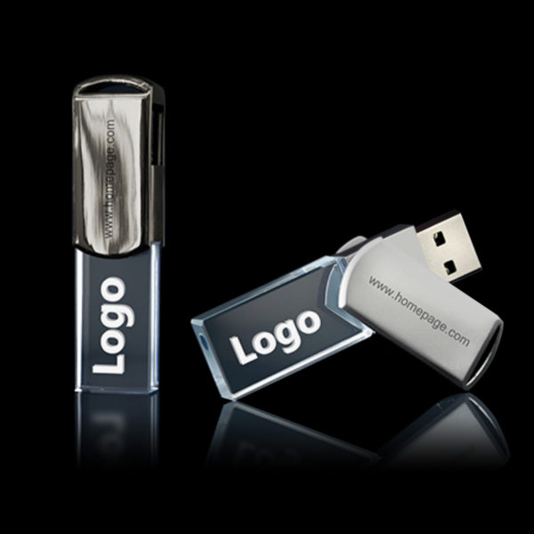 Our Crystal Swivel UDF 460-D USB Drive lights up your 2D or 3D logo in Red, Green, Blue, Amber or White light!